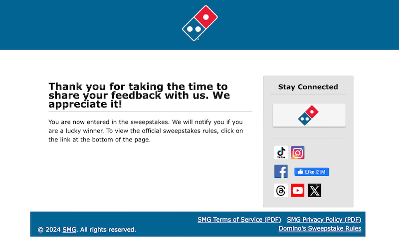 That is pretty much everything there is to the Domino’s Feedback Survey! Let’s go over the main notes!